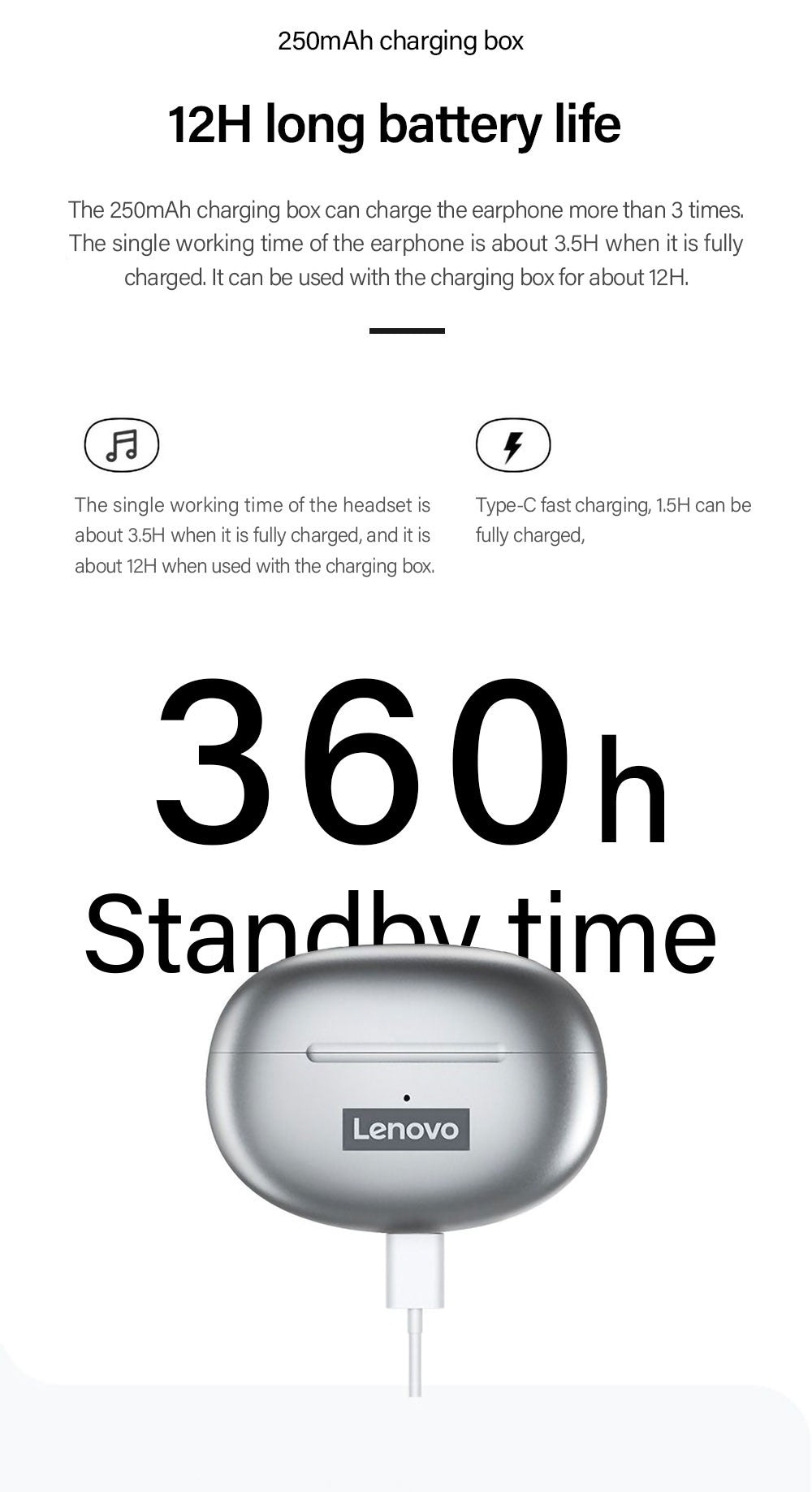 Fone Lenovo original Bluetooth modelo à prova d'água